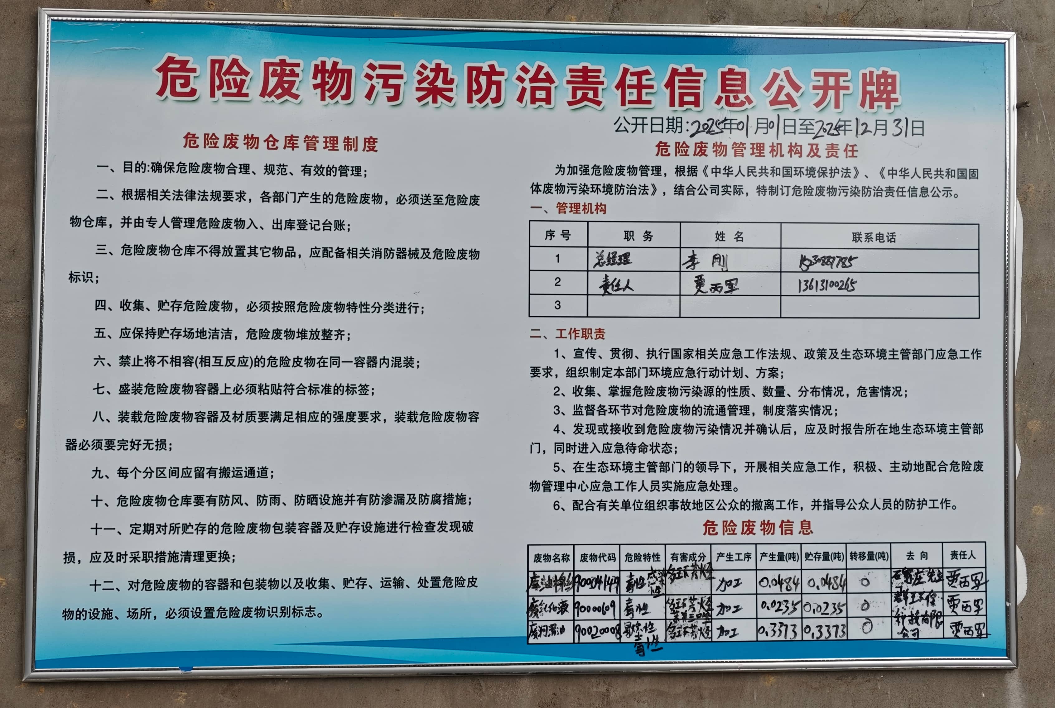 危險廢物污染防治責(zé)任信息公開牌